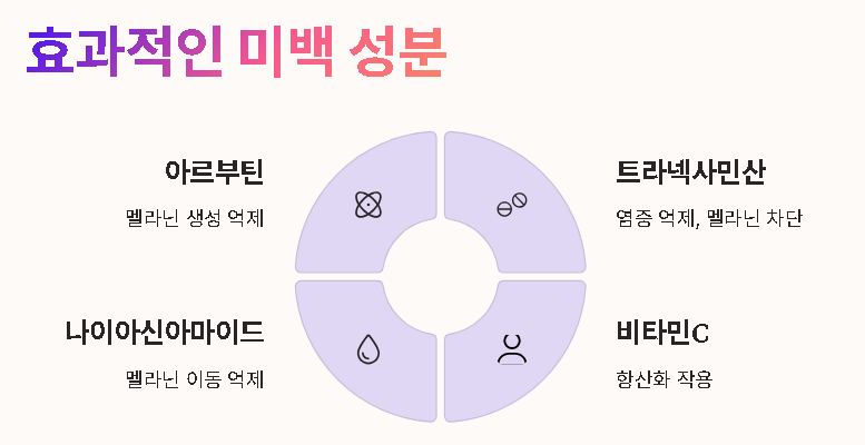 기미에 효과적인 미백 성분은 다음과 같습니다: